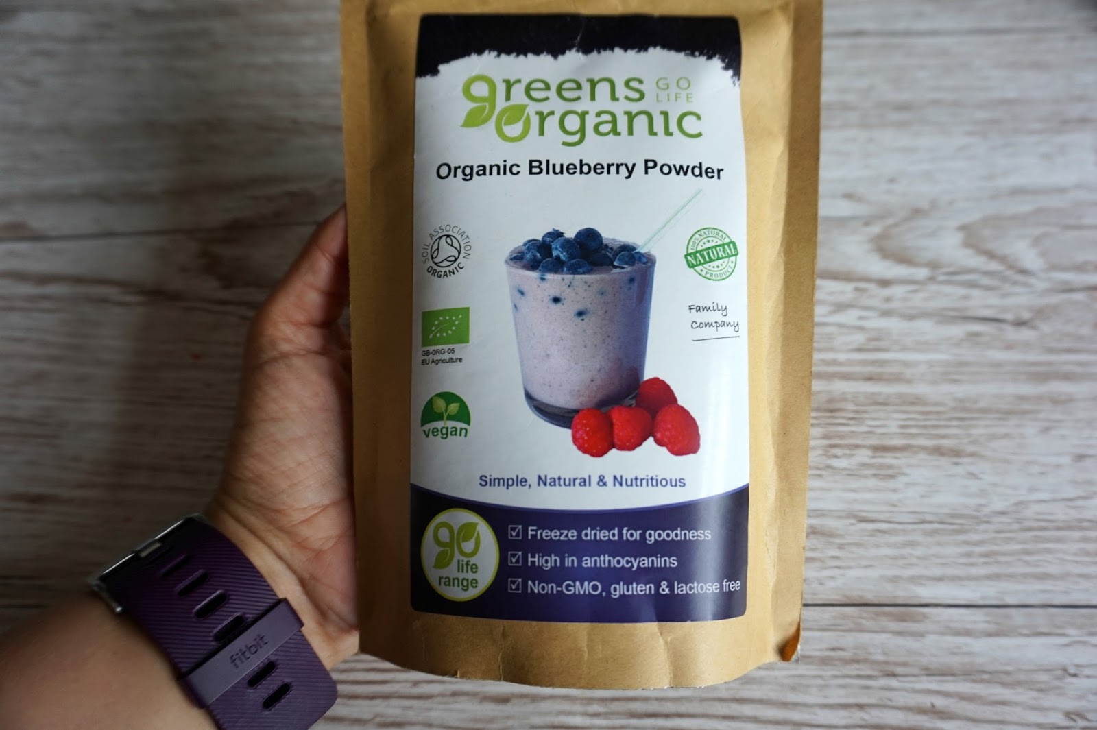 Purple: You can use fresh blueberries and grind them down, or if you want some freeze-dried blueberry powder like I used. Again got this from a health food shop.