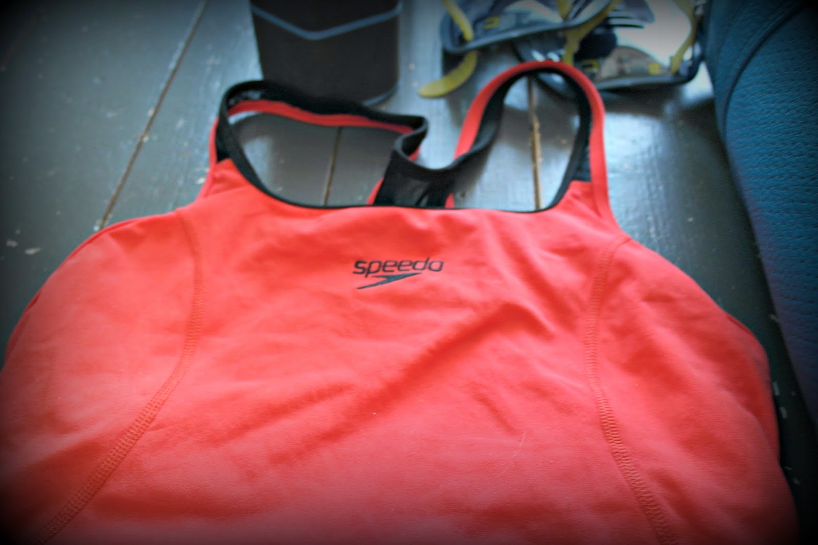 I don’t just swim for the sake of swimming I go with the intention of training, so to work on my front crawl I use paddles and a pool buoy. I also have Zoggs goggles (these are by far the best I’ve trained with) and I do use a swim cap but I couldn’t find it for the photo… but I use my Blenheim Triathlon one normally.
