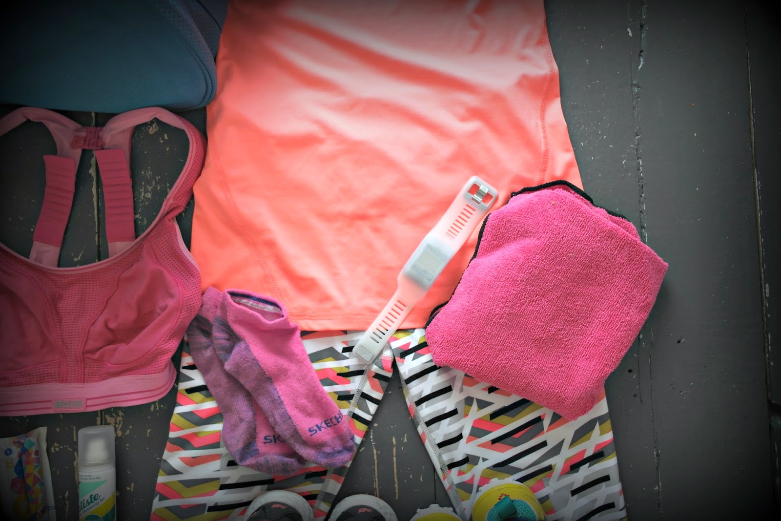These do vary from training session but for today’s aerobics class we have my Fabletics capris, my F&F Active neon stretchy vest and my Shock Absorber sportsbra*.  I like colourful socks as I tend to lose them if I can’t see them, so we have my Skecher ones from TKmax and little towel from the range at Poundland.