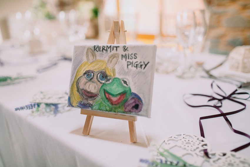 I like to do things on a budget and find the excitement of getting a bargain rather exhilarating. We started by hitting The Range for all our favour boxes, where we spotted the exact same thing was on Etsy for three times the price. Oh yeah, Etsy and Pinterest about broke us, it is the most distracting part of planning a wedding! It’s one major ideas factory when you sometimes just need to focus, and Etsy is good but ridiculously overpriced. My table names were my own paintings of my favourite Muppet characters on mini easels I got from The Works! So basically we decided to get crafting! A word that still haunts my husband to this day.